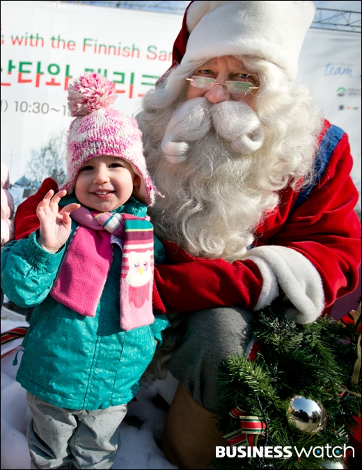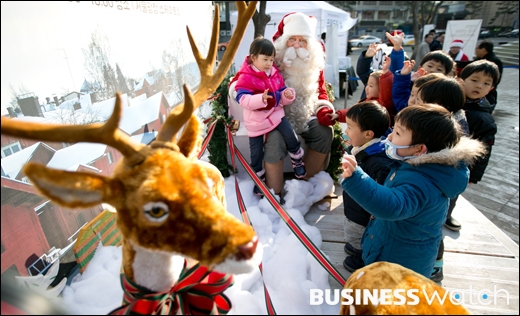 | ▲ 크리스마스 이브를 하루 앞둔 23일 오전 서울광장에서 핀란드 산타마을에서 온 산타클로스 할아버지가 어린이들과 기념 촬영을 하고 있다. /이명근 기자 qwe123@ |