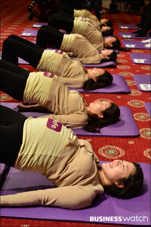 ▲ 제25회 베페 베이비페어가 16일 서울 삼성동 코엑스에서 열렸다. 요가코너에서 말띠 해 출산을 앞둔 임산부들이 순산에 도움이 되는 요가 동작을 배우고 있다./이명근 기자 qwe123@ |