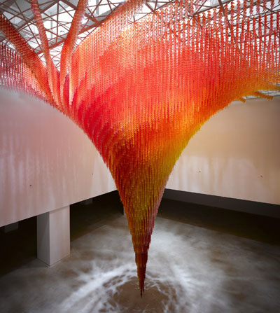 | ▲ 지난 2010년 하이트컬렉션에서 선보인 서도호 작(作) '인과'. 1층 로비 천장부터 지하 1층 바닥까지 이어지는 8m 높이의 거대한 설치작품이다. |