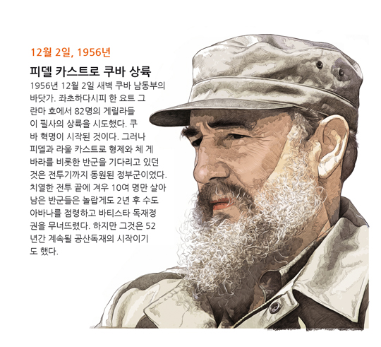 1956년 12월 2일 새벽 쿠바 남동부의 바닷가. 좌초하다시피 한 요트 그란마 호에서 82명의 게릴라들이 필사의 상륙을 시도했다.