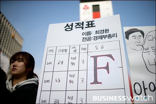 이들은 "말뿐인 창조경제 아래 한국 경제가 나아졌는지 의문"이라며 "최 부총리가 최근 '중규직' 발언과 함께 내비친 노동시장 개혁은 대학생 뿐만 아니라 전세대적으로 불안감만 키우고 있다"고 지적했다.