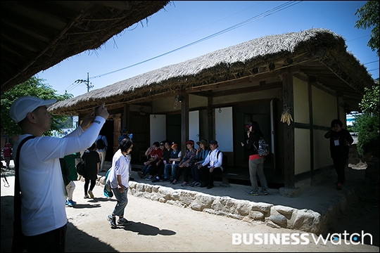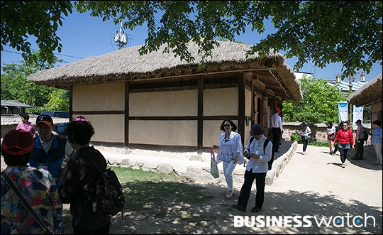 | ▲ '향수'의 시인 정지용을 기리는 '향수열차'가 16일 서울역에서 시인의 고향인 옥천에 도착했다. 향수열차에 탑승한 축제참가자들이 정지용 생가를 관람하고 있다. /이명근 기자 qwe123@ |