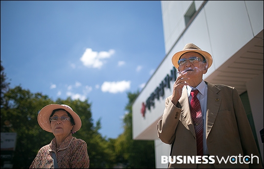 | ▲ 남북 이산가족상봉 실무접촉회담이 열린 7일 서울 대한적십자사에서 북에 어머니를 찾는 오승익씨(83, 오른쪽)와 김춘자씨(85)가 이산가족 찾기 서류접수를 마친 뒤 하늘을 바라보고 있다. /이명근 기자 qwe123@ |