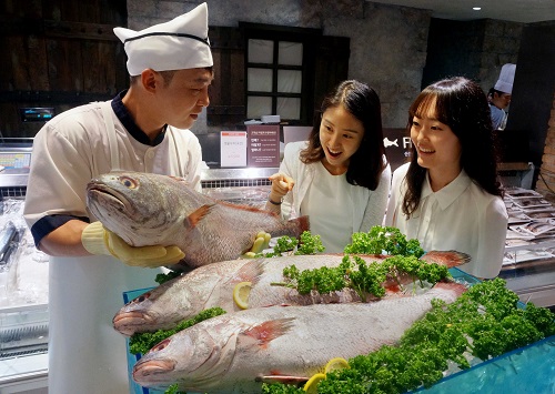 ◆현대백화점 압구정본점은 초복(18일)을 앞두고 목포산 대물민어를 내일(16일)부터 오는 20일까지 20% 할인 판매한다. 이날 선보이는 민어는 무게가 8kg으로 보통 1~2kg정도 민어에 비해 8배 정도 큰 것이 특징이다. 민어는 초여름부터 잡히는 민어가 가장 맛이 좋으며 단백질과 비타민 A, B가 풍부한 것이 특징이다.