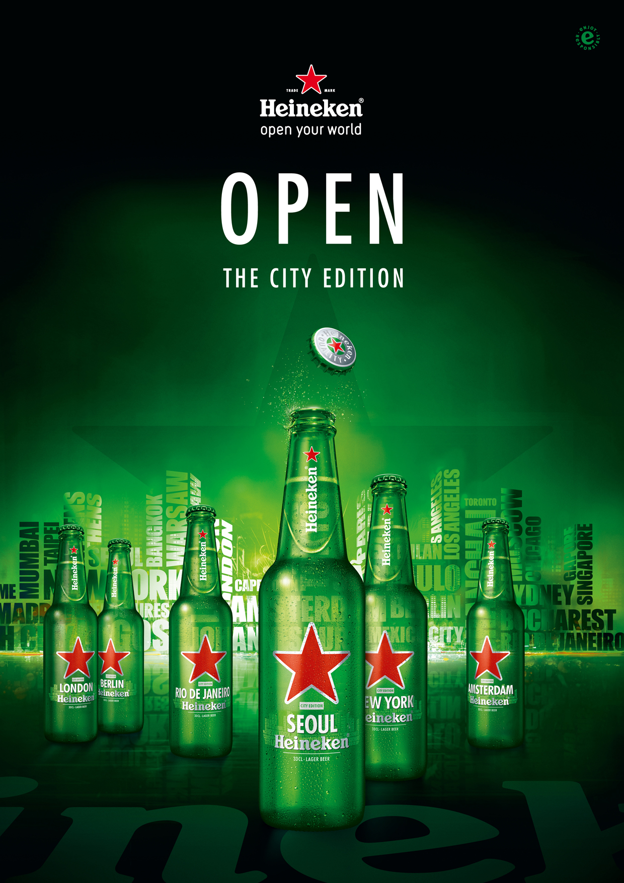 하이네켄 병에 새겨질 트렌디한 도시들은 암스테르담(Amsterdam), 뉴욕(New York), 베를린(Berlin), 런던(London), 리오 데 자네이루(Rio De Janeiro), 서울(Seoul)이다.
