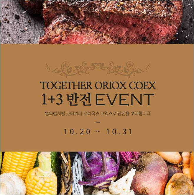 ‘투게더 오리옥스 코엑스 1+3 반전 이벤트’는 현재 오리옥스 코엑스에서 진행하고 있는 4인 방문 시 1인이 무료로 식사 할 수 있는 ‘3+1 프로모션’의 반전 이벤트다.