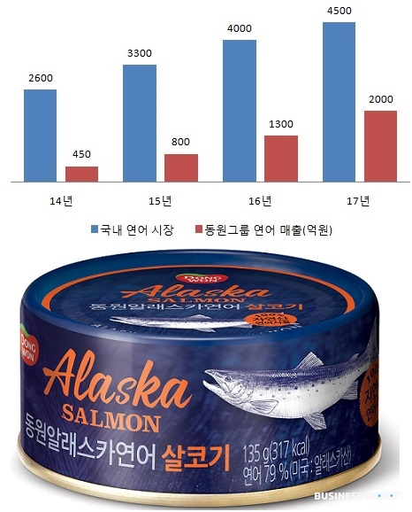 아울러 미국 참치캔 브랜드 ‘스타키스트’를 활용해 미국 연어 시장에서도 1위에 차지하겠다는 계획이다. 서정동 동원그룹 홍보실 상무는 “연어를 참치에 이어 ‘국민수산물’로 키우겠다”고 말했다.