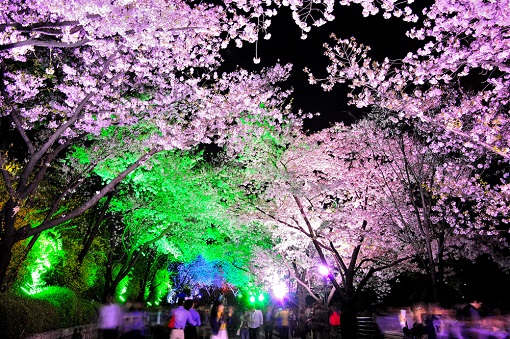 아이 주먹만한 왕벚꽃으로 이루어진 이월드 벚꽃들은 야간에 조명을 받으면 몽환적인 분위기를 자아내는 것이 일품이다. 일반적인 벚꽃놀이와 달리 어두운 밤하늘 속에서도 밝게 빛나는 벚꽃을 볼 수 있다.