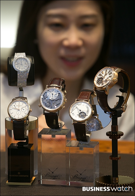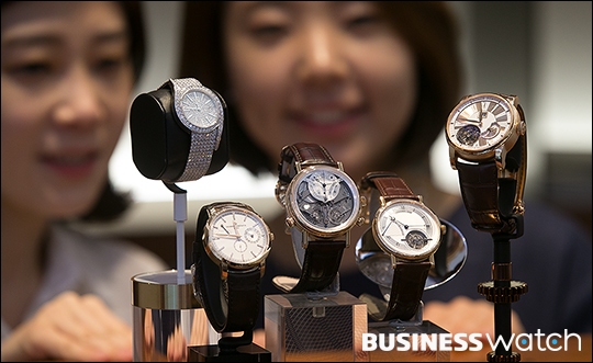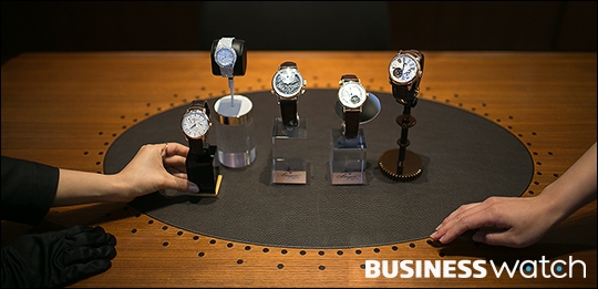 | ▲ 6일 서울 강남구 현대백화점 압구정본점에서 모델들이 '럭셔리 워치 페어' 에 참여하는 브랜드 시계를 선보이고 있다. /이명근 기자 qwe123@ |