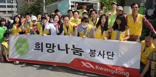 ▲광동제약은 지난 16일 경기도 이천시 관고동에서 광동한방병원과 함께 무료 집수리 및 무료 진료 봉사활동을 진행했다(아래 사진). 이번 봉사활동에는 광동제약 임직원과 가족, 광동한방병원 의료진과 직원, 희망의 러브하우스 자원봉사자 등 60여 명이 참여했다. 광동제약은 2008년부터 봉사단체 '희망의 러브하우스'와 함께 소외 이웃의 노후주택 보수 활동에 매년 참가해오고 있다.