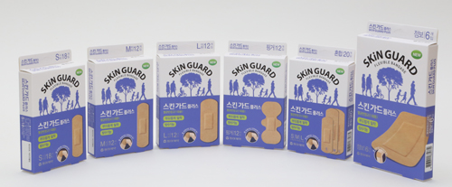 ▲동아제약은 상처 보호에 효과적인 일회용 밴드(반창고) ‘스킨가드 플러스(SKIN GUARD PLUS)’를 출시했다(아래 사진). 이 제품은 밀착력이 좋은 고밀도 우레탄 부직포와 저 알러지성 점착제로 만들어 굴곡지거나 움직임이 많은 부위에 붙여도 잘 떨어지지 않고 피부 자극이 덜한 것이 특징이다. 몸에 생긴 상처의 크기와 부위에 따라 선택하여 쓸 수 있도록 ‘소형’, ‘중형’, ‘대형’, ‘혼합형’, ‘점보’, ‘핑거’ 총 6종류로 구성됐다. 이 제품은 약국에서 구입 할 수 있으며 자세한 사항은 전화(080-920-2002)로 문의하면 된다.