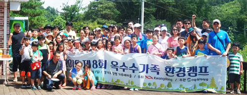 ▲광동제약은 제 8회 옥수수가족환경캠프를 성황리에 마쳤다. 이번 옥수수가족환경캠프는 지난 7월 25~26일 양일간 초등학생 자녀를 동반한 가족들로 구성된 참가자 100명이 농촌체험마을로 잘 알려진 경기도 양평 가루매마을에서 진행됐다.