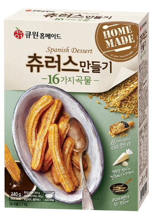 ◆삼양사는 집에서도 간편하게 츄러스를 만들어 먹을 수 있도록 만든 ‘큐원홈메이드 츄러스만들기’(오른쪽 사진)를 출시했다.