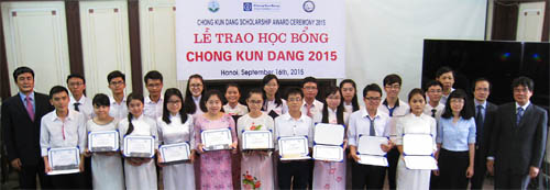 종근당고촌재단은 지난 16일 베트남 하노이 약대에서 쟌흥(Tran Hung) 호치민 의약대학 학장과 타잉 홍 토우(Thai Nguyen Hung Thu) 하노이 약대 부학장 등 각 학교 관계자가 참석한 가운데 `2015 장학증서 수여식`을 가졌다(사진).