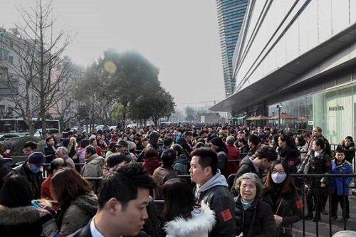 | ▲지난 15일 중국 상해 창닝 지구에 위치한 팍슨-뉴코아몰 앞에는 수백명의 고객들이 몰렸다. (사진=이랜드) |