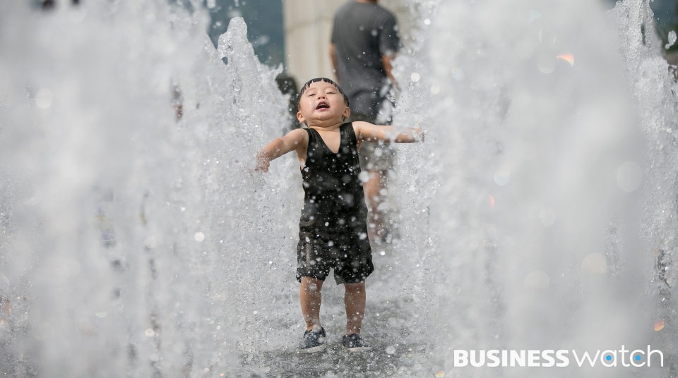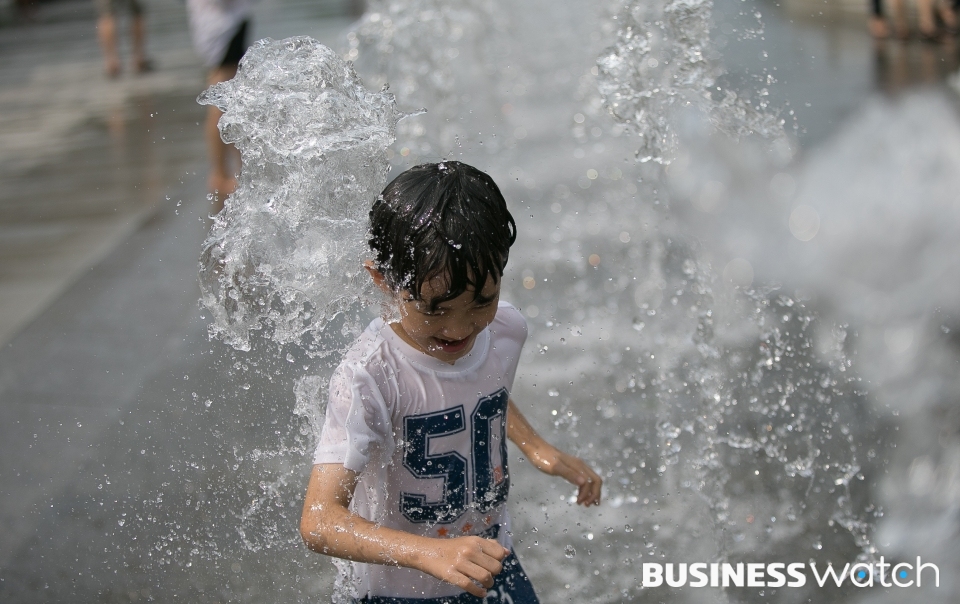 | ▲ 8일 서울 광화문광장 분수대에서 어린들이들이 물놀이를 즐기고 있다. /이명근 기자 qwe123@ |