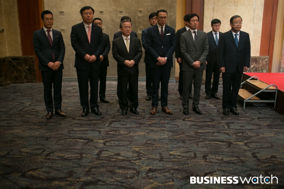 | ▲ 두손 모은 계열사 부사장단 |