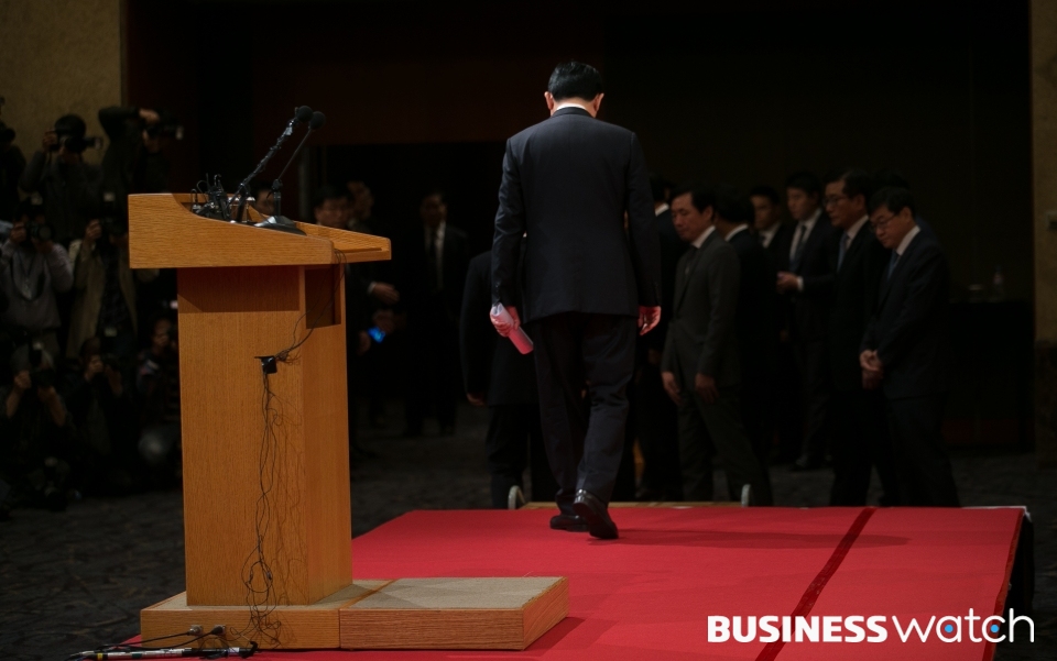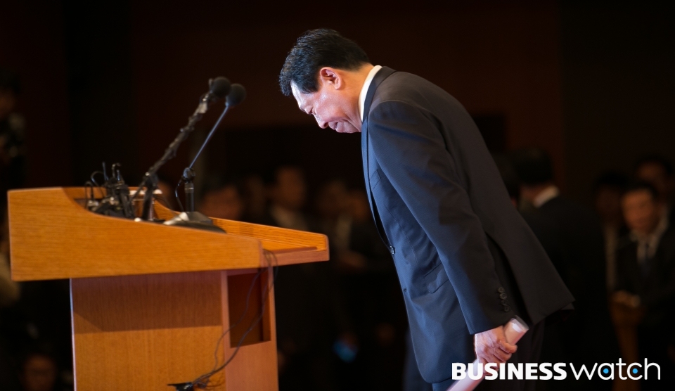 | ▲ 신동빈 회장 사과문 발표 신동빈 회장이 25일 서울 롯데호텔에서 사과문을 발표한 뒤 인사하고 있다. |
