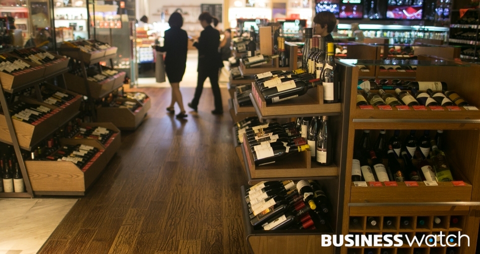 | ▲ 송년회 약속이 많은 연말, 붐벼야할 와인주류 매장이 할인행사임에도 불구하고 한산하다. |