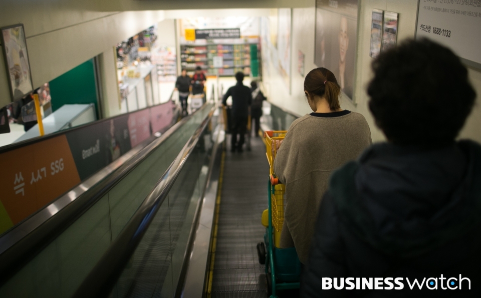 | ▲ 주부 A씨는 27일 아이와 함께 대형마트를 찾았다. 아이와 찬거리 필수 용품만을 단촐하게 구매 한 뒤 마트를 나서고 있다. A씨는 "연말맞아 추워진 날씨만큼 소비심리가 싸늘하다"며 "더 살건 많지만 뭔지 모르는 불안감에 지갑 열기가 어려워진다" 라고 말하며 마트를 빠져 나갔다. /이명근 기자 qwe123@ |