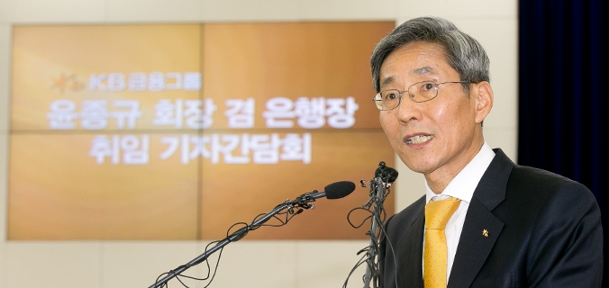 윤종규 KB금융그룹 회장 겸 국민은행장이 25일 취임 후 첫 기자간담회를 열었다.