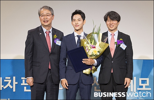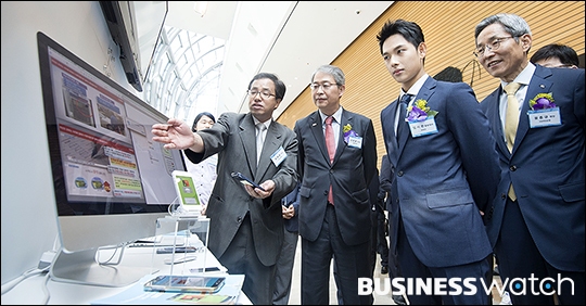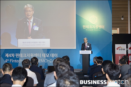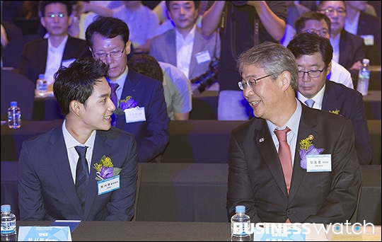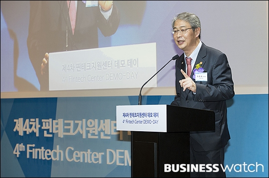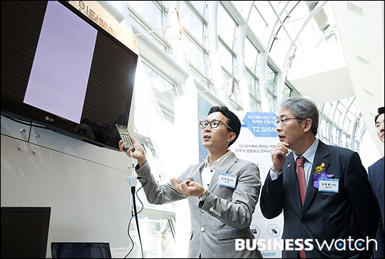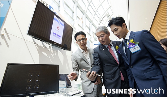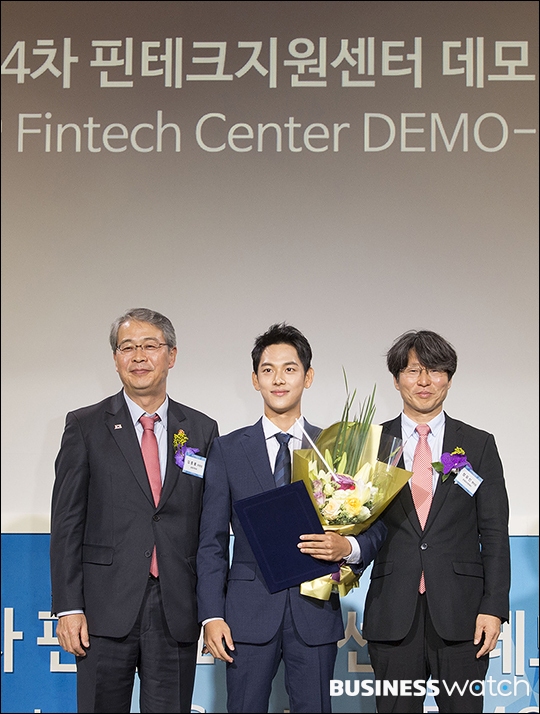 | ▲ '미생'으로 큰 인기를 모은 배우 임시완(오른쪽)이 27일 오전 서울 여의도 전경련 회관에서 열린 '제4차 핀테크지원센터 데모 데이-홍보대사 기자간담회'에 참석해 임종룡 금융위원장과 함께 핀테크 시연을 하고 있다. /이명근 기자 qwe123@ |