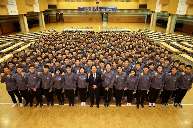 신한은행과 카드, 금융투자, BNP파리바자산운용, 캐피탈, 제주은행, 저축은행, 데이타시스템 등 신한금융 8개 그룹사 신입사원들은 지난 12일부터 16일까지 4박 5일간 경기도 용인시 신한은행 연수원에서 그룹 신입사원 공동연수를 받았다. 한동우 회장은 공동연수 마지막 날인 16일 오전 연수원을 찾아 새내기 직장인들에게 축하와 환영의 뜻을 전하고, 1시간 반에 걸쳐 특강을 진행했다.