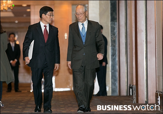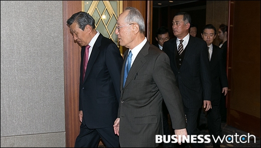 | ▲ 회의장 이동하는 박영주 회장과 이준용 회장 |