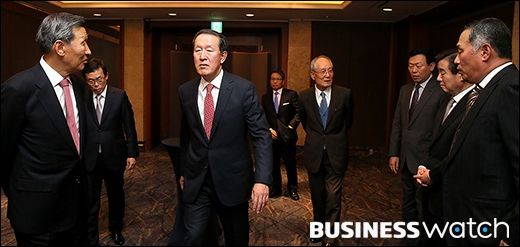 14일 오후 서울 소공동 롯데호텔에서 열린 올해 마지막 회장단 회의는 전경련의 위기를 여실히 보여줬다. 이날 참석자는 회장단 21명의 절반도 안 되는 7명에 그쳤다.