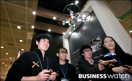 | ▲ 4일 오전 서울 삼성동 코엑스에서 열린 2013 대한민국 벤처.창업 박람회에서 바이로봇사가 초소형 전투비행로봇 '드론 파이터' 시연을 하고 있다. /이명근 기자 qwe123@ |