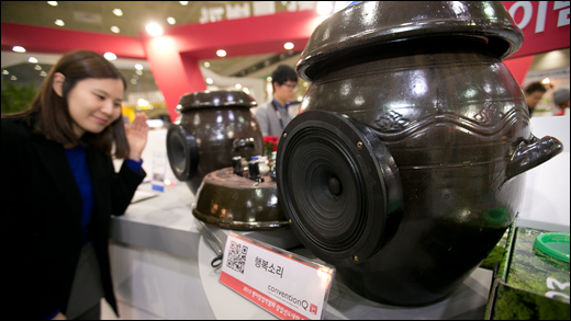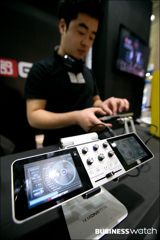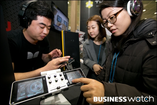| ▲ 4일 오전 서울 삼성동 코엑스에서 열린 2013 대한민국 벤처.창업 박람회에서 JD사운드사가 듀얼LCD 터치스크린이 장착된 초소형 디제잉 머신을 선보이고 있다. |