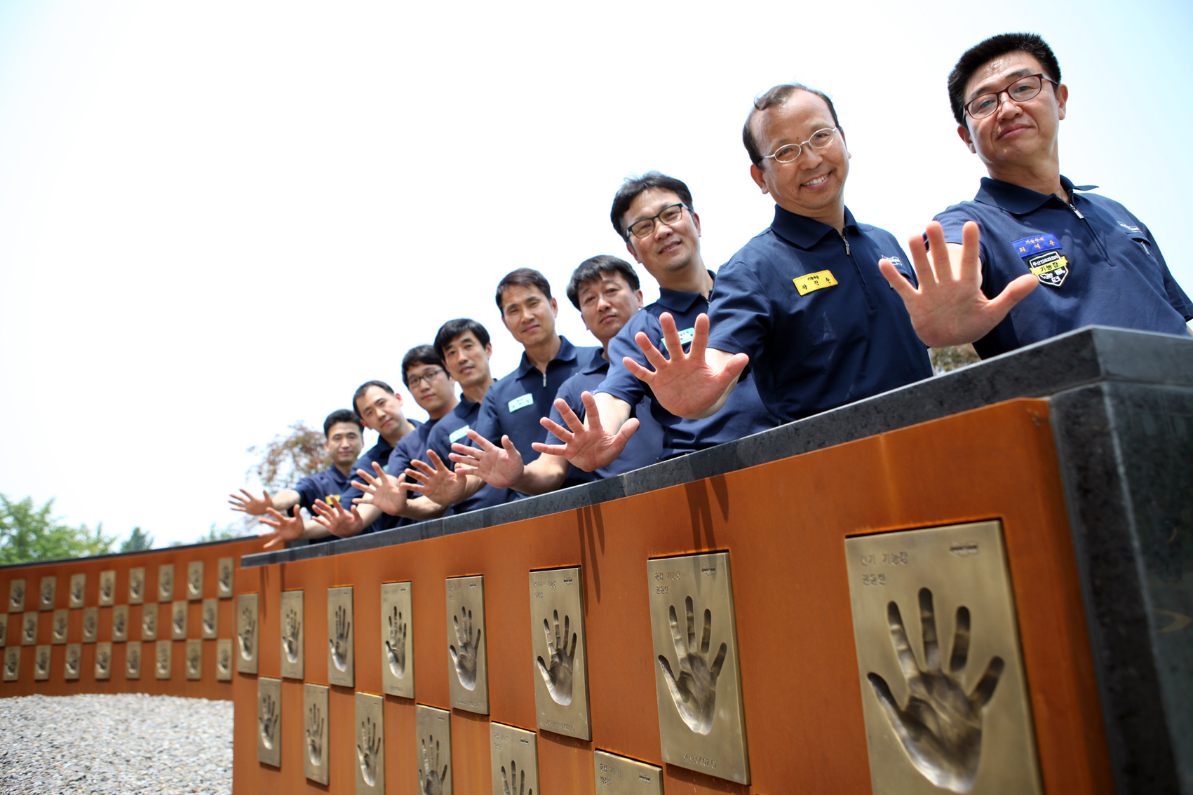 ◆두산인프라코어는 22일 인천 화수동 두산인프라코어 글로벌 R&D 센터 앞에 기능장들의 핸드프린팅 조형물을 설치했다고 밝혔다.
