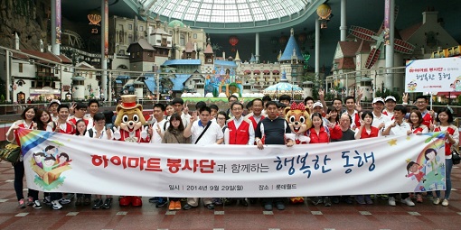 ◆롯데하이마트는 지난 29일 임직원 봉사단 20여 명이 참석한 가운데 잠실 롯데월드에서 송파·강남 거주 장애인 30여명을 초청해 나들이 봉사활동을 진행했다. 이번 행사는 혼자서 외출이 힘들고 나들이 기회가 적은 장애인들에게 일반인들과 함께 어울려 활동할 수 있는 기회를 제공하려고 마련됐다.