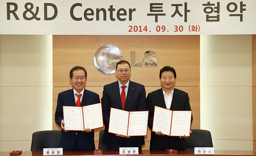 ◆LG전자가 창원공장내에 연구개발(R&D)센터를 건립한다. 경상남도와 창원시, LG전자는 30일 경남 창원시 가음정동 LG전자 창원1공장에서 홍준표 경남도지사, 안상수 창원시장, 조성진 LG전자 사장 등이 참석한 가운데 R&D센터 투자 협약을 체결했다.