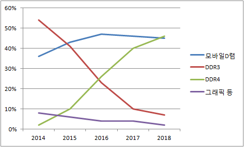 | ▲ D램 비중 추이(자료:IHS테크놀로지) |