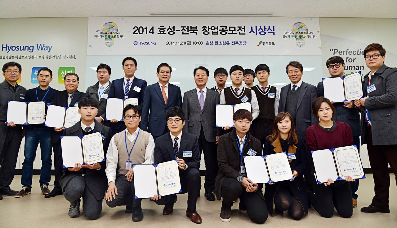 ◆효성은 전라북도와 함께 진행한 “창조아이디어로 내 꿈을 펼쳐라” 창업공모전 결과를 발표하고 선정된 10개 팀에 대한 시상식을 21일 효성 전주공장에서 개최했다.