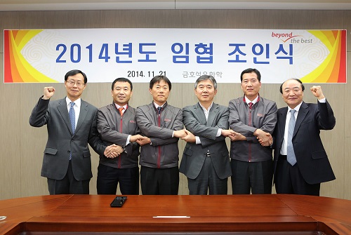 금호석유화학 노사는 통상임금 확대를 수용하는 대신 올해 임금인상은 동결하는 것으로 합의했다. 이번 협약으로 금호석유화학은 27년 무분규 협약이라는 기록을 이어가게 됐다.
