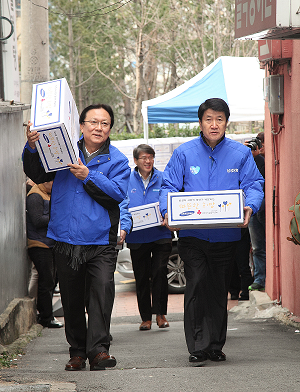 올해도 삼성 사장단과 임직원들은 전국적으로 6400여개 쪽방을 방문해 총 3억원 상당의 쌀, 라면, 김 등이 담긴 생필품 세트를 전달하고 어르신들을 위로했다. 삼성은 사장단 쪽방 봉사활동을 시작으로 연말까지 3주간 지역사회와 소통하고, 어려운 이웃과 함께 하는 '연말 이웃사랑 캠페인' 활동도 펼칠 예정이다.