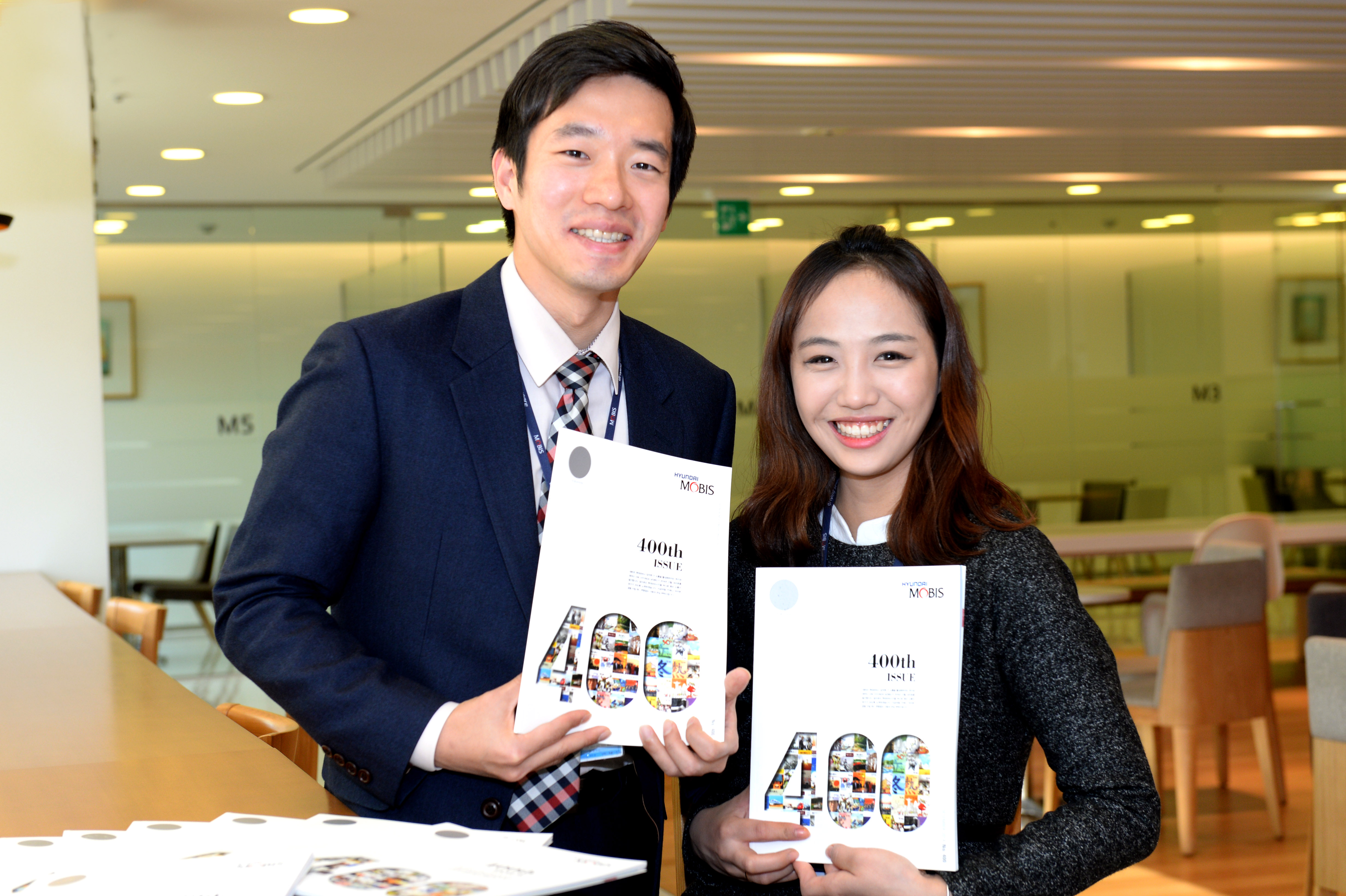 현대모비스는 이번 400호 발행을 기념해 이달 초 발행된 12월호 사보를 특집호로 구성했다. 표지에 소정의 상품교환권이 있는 스크래치 카드를 부착했다.