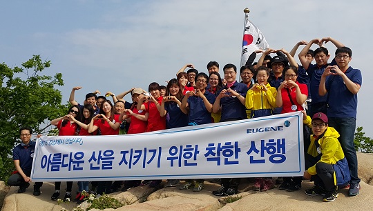 ◆유진그룹은 지난 10일 계열사 전 임직원(1800명)이 근무지 인근의 61개 산에 올라 등산로 주변 쓰레기 줍기와 등산객에세 친환경 쓰레기 봉투 나눠주기 등 '착한산행' 캠페인을 진행했다고 11일 밝혔다. 행사는 유진기업과 유진투자증권, 한국통운, 나눔로또 등이 근무지 기준 58개 팀으로 나줘 산행지를 자율적으로 선택했다. 유경선 유진그룹 회장을 비롯한 경영진은 유진인재개발원이 있는 인왕산에 올랐다. 한라산과 백두산, 지리산을 등정할 특별팀도 선발했다. 유진그룹 관계자는 "모든 임직원이 같은 날 환경보호를 통해 지역사회에 봉사하는 행사였다"고 말했다.