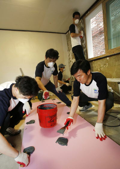 임직원은 여름에도 습기 없이 쾌적한 환경을 유지하고 냉난방비를 절감할 수 있게 내부 단열 및 창호 교체작업을 진행했고 내부 조명을 전력효율이 높은 LED 조명으로 갈았다. 또 곰팡이 제거와 도배, 장판 교체 작업도 함께 진행하고 낡은 싱크대와 가구를 교체했다.