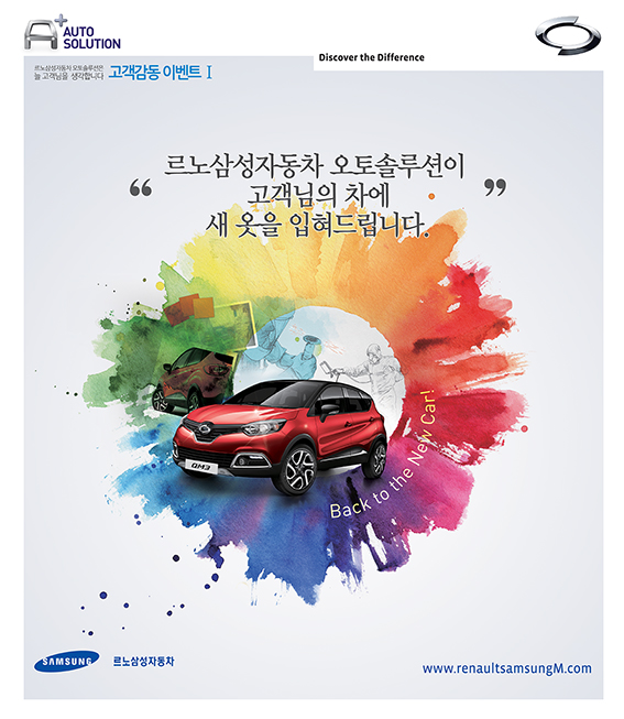 르노삼성은 오는 6월 27일까지 르노삼성 홈페이지에 내 차를 도색 해야 하는 이유를 감동적인 사연 및 차량사진과 함께 응모하는 고객 중 추첨을 통해 풍성한 혜택을 제공한다.