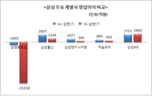 전자를 제외한 다른 제조계열사들의 실적도 신통치 못했다. 가장 부진했던 것은 삼성중공업이다. 삼성중공업은 지난 2분기 무려 1조5481억원의 영업손실을 기록했다. 창사이래 최대규모 손실이었다.
