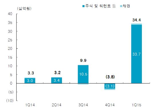 다만 754억원의 영업이익 가운데 주식 및 워런트 운용이익이 337억원에 달해 실질적인 영업이익은 400억원 수준으로 현 수준이 계속 유지될 가능성은 낮은 것으로 평가됐다.