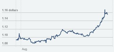 | ▲ 금 가격 및 유로-달러 추이(출처:NYT) |