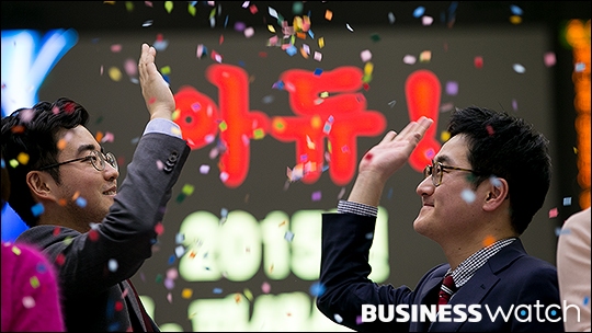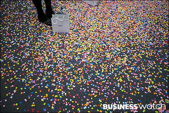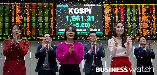 2015년 증권·파생 상품 시장의 거래가 마감한 30일 서울 여의도 한국거래소에서는 폐장을 기념해 예년과 같이 꽃가루를 날리는 기념식이 열렸다.
