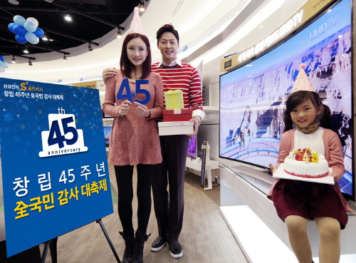 삼성전자가 창립기념일을 맞아 이달 부터 오는 12월31일까지 ‘삼성전자 S 골드러시 창립 45주년 전국민 감사대축제’를 실시한다.