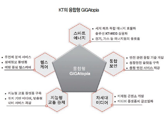 KT 관계자는 "수많은 사물들의 연결을 위한 더욱 강력한 네트워크와 수많은 센서들을 관리하고, 수집된 정보들을 분석해 새로운 가치를 창출해 내는 데이터의 선순환 구조 속에서 산업 전 분야와 삶의 패러다임은 급격히 바뀔 것"이라며 "이러한 변화 속에서 KT는 기가토피아 세상의 중심으로서 다양한 미래 융합사업들을 선도할 방침이다"고 강조했다.