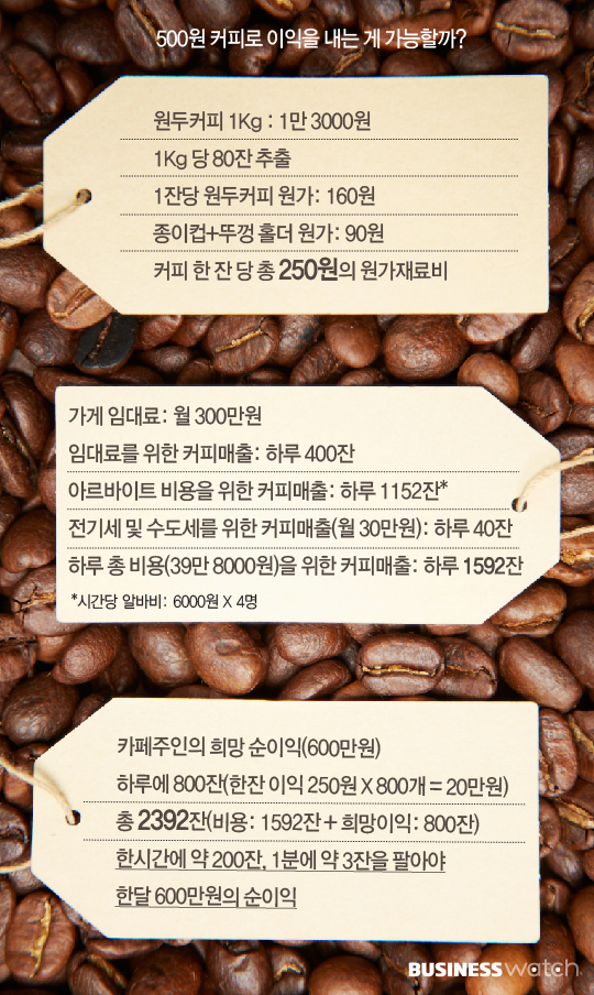 결론은 500원짜리 커피로 먹고 살기 쉽지 않다.