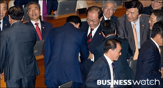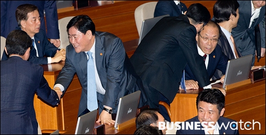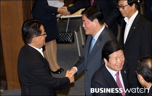 | ▲ 인사나누는 최경환 부총리와 박지원 새정치민주연합 의원 |